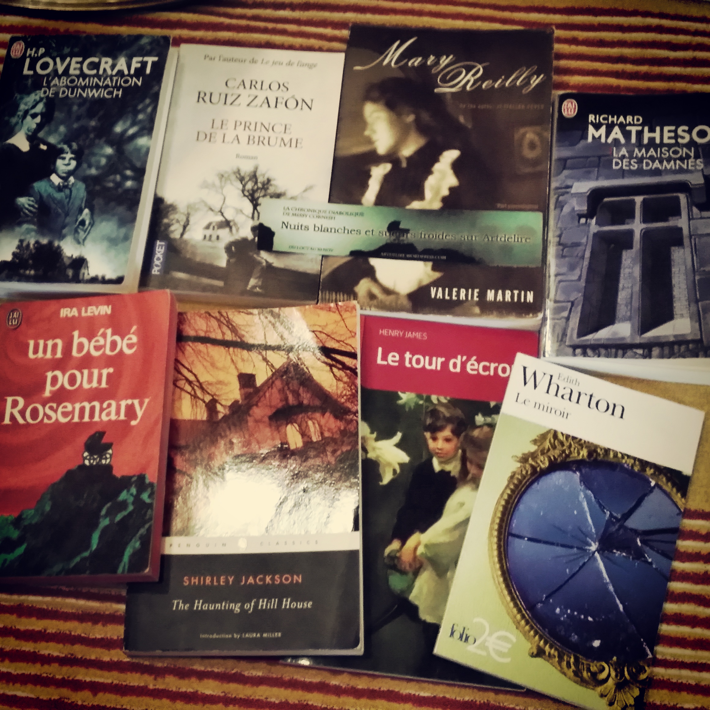 J’en profite pour vous faire part de l’évolution de mes chroniques ; je pense qu’un petit bilan des dernières lectures s’impose… Mon petit challenge personnel « la PAL diabolique »n’est pas encore fini mais il a bien avancé. J’ai ainsi lu 6 livres sur les 8 que je m’étais initialement fixés, ce qui n’est pas trop mal ! Je suis en ce moment un peu plus lente pour poster mes billets, n’en ayant publié que deux depuis le mois dernier. Rassurez-vous, un troisième est en préparation, Mary Reilly, une adaptation en anglais du Docteur Jekill et Mister Hyde. Il me reste à lire la petite nouvelle d’Edith Warthon, Le miroir et le roman de jeunesse Le prince de la brume de Carlos Ruiz Zafon.