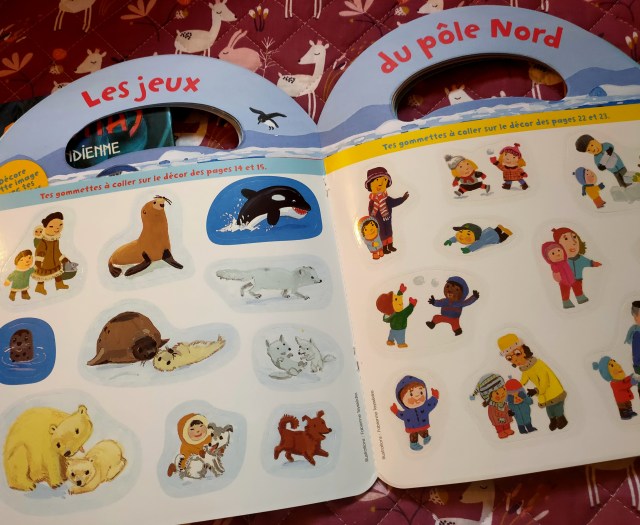Nous avons également acheté un hors série du magazine Popi, un régal pour les yeux. Ce numéro est aussi dédié à l’hiver et nous fait voyager dans le pays des esquimaux. Il y a une palette d’autocollants superbe et bien fournie, de quoi occuper la Miss durant les après-midis pluvieux. Faute de balade, elle pourra au moins s’amuser à jouer avec ses décors. Nous aimons beaucoup les stickers et elle en raffole particulièrement.