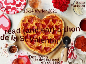 Je viendrai flâner demain matin sur les blogs de copinautes pour lire leur dernier bilan avant de dire adieu (du moins pour cette année) au Read-a-thon gourmand de la Saint-Valentin. Des bisous masqués ! Je vous retrouve très vite pour de nouveaux billets littéraires !
