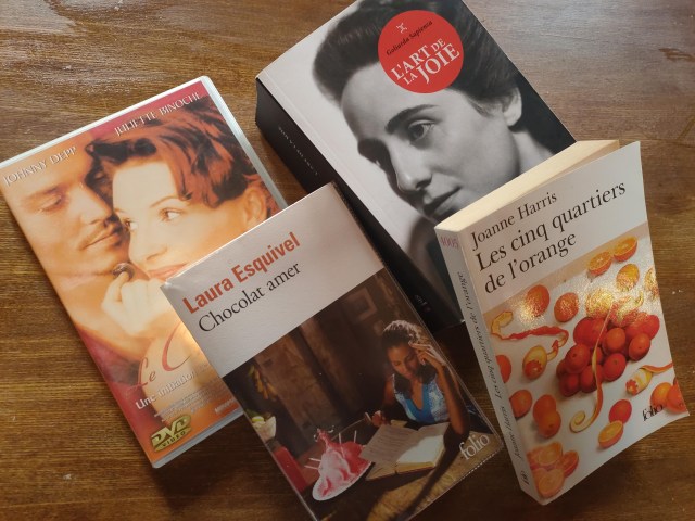 En fouinant dans mes étagères, j’ai déniché ces quelques titres. Je suis actuellement plongée dans la lecture de L’Art de la Joie de Goliarda Sapienza, un ovni littéraire, j’aimerais poursuivre cette lecture étrange et envoûtante durant le weekend. Toutefois, j’ai également deux romans dans ma PAL qui me font de l’œil depuis plusieurs mois et que j’aimerais peut-être débuter durant ces deux jours de repos. Je n’ai pas non plus visionné Le Chocolat depuis plusieurs années, j’ai bien envie de le redécouvrir ce soir…