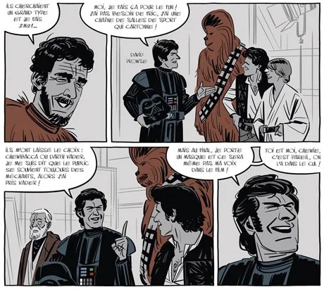J’ai adoré cette bande dessinée. J’aime beaucoup la saga Star Wars en général et c’était un vrai plaisir d’en savoir plus sur le tournage, la production, les anecdotes de recrutement, de signature de contrats, la création en elle-même… la bd mérite sa longueur tant elle est riche en détails, en critique du monde du cinéma, et par l’affection qu’elle nous fait ressentir pour Lucas, aussi imaginatif qu’introverti. En plus, ça se lit facilement et le graphisme correspond vraiment bien au sujet. Comme toi, je me dis vivement le tome 2 !